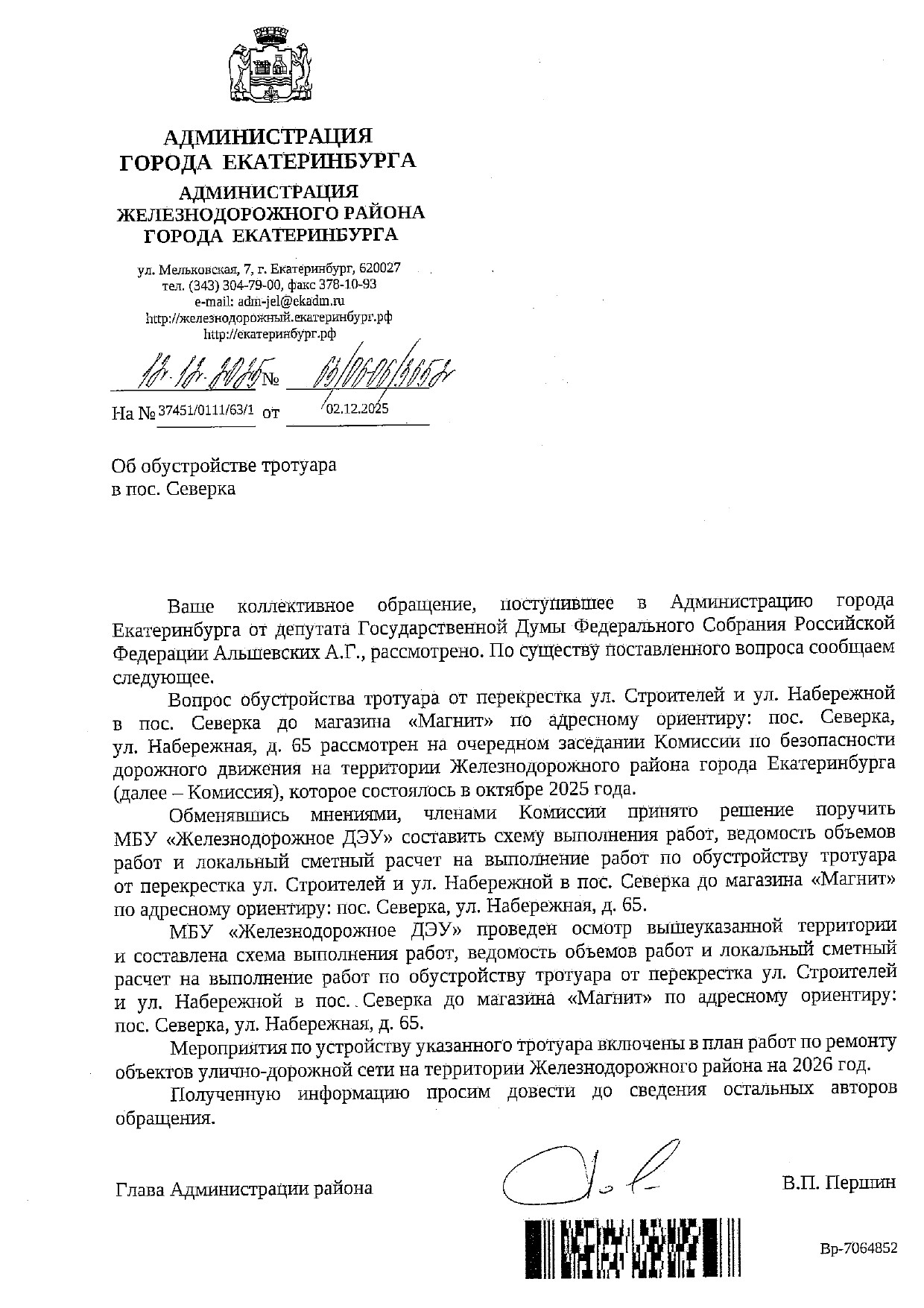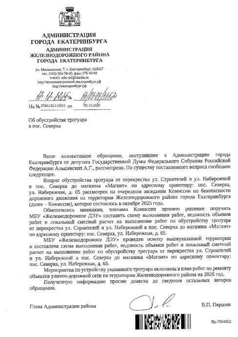 Ранее власти Железнодорожного района Екатеринбурга сообщали, что в октябре обсудят обустройство тротуара в Северке.