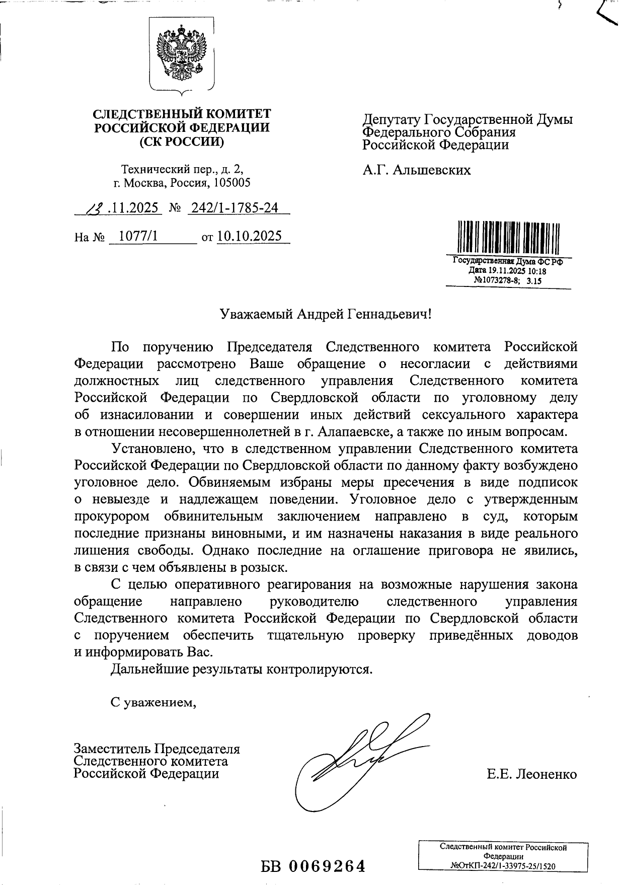 Вместе с депутатом думы Екатеринбурга от «Единой России» Александром Альшевских прорабатываем поступившие заявления. Я беру на себя общегородские, областные и федеральные вопросы. Он содействует с решением проблем Железнодорожного района.