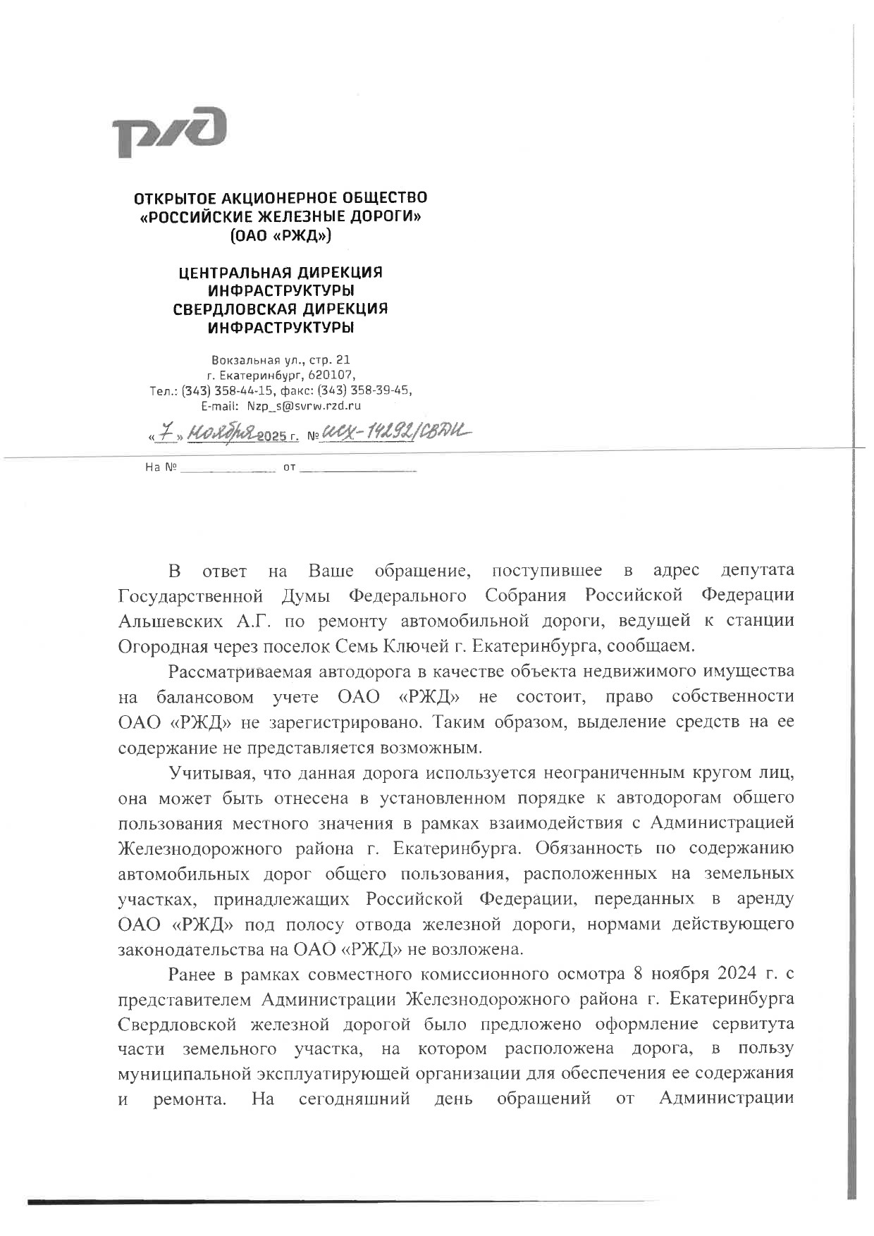 От садоводов неоднократно слышал претензии к состоянию проезда от СНТ «Надежда» к станции Огородная. Фактически это полоса отвода железной дороги, однако РЖД настаивает, что содержать ее не должна.