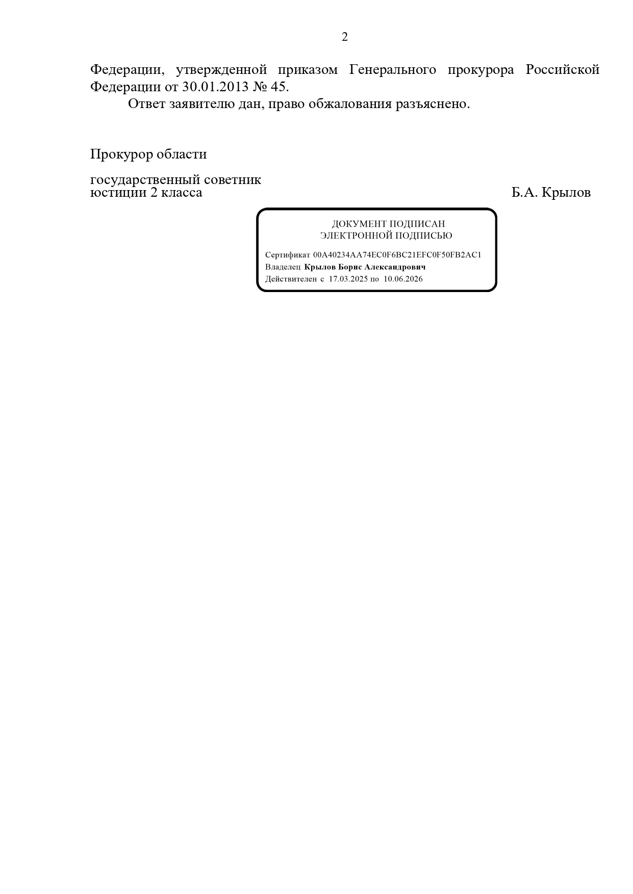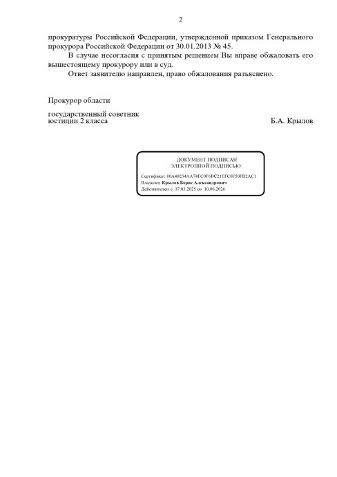 И ответ прокуратуры косвенно подтверждает этот довод.