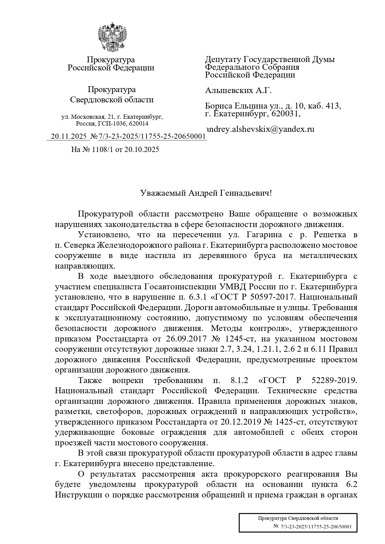 Депутат Государственной Думы РФ от Екатеринбурга, Верхней Пышмы и Среднеуральска