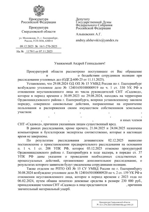 Два с лишним года буксуют уголовные дела вокруг СНТ «Садовод» в Екатеринбурге.