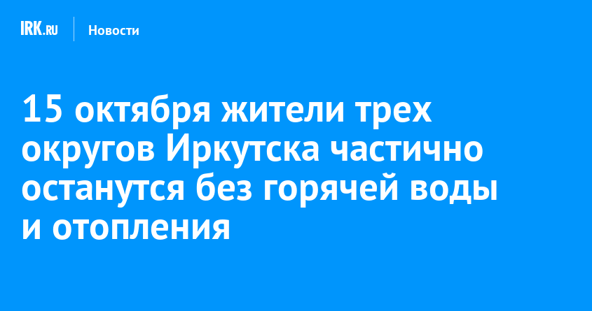 15 октября жители трех округов Иркутска частично останутся без горячей воды и отопления