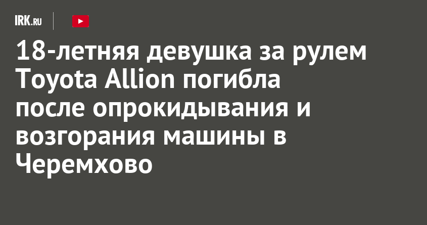 18-летняя девушка за рулем Toyota Allion погибла после опрокидывания и возгорания машины в Черемхово