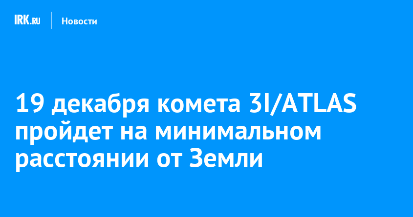 19 декабря около 07:00 по московскому времени одна из самых ярких комет 3I/ATLAS пройдет на минимальном расстоянии от Земли. Об этом сообщается в телеграм-канале лаборатории солнечной астрономии ИКИ РАН.