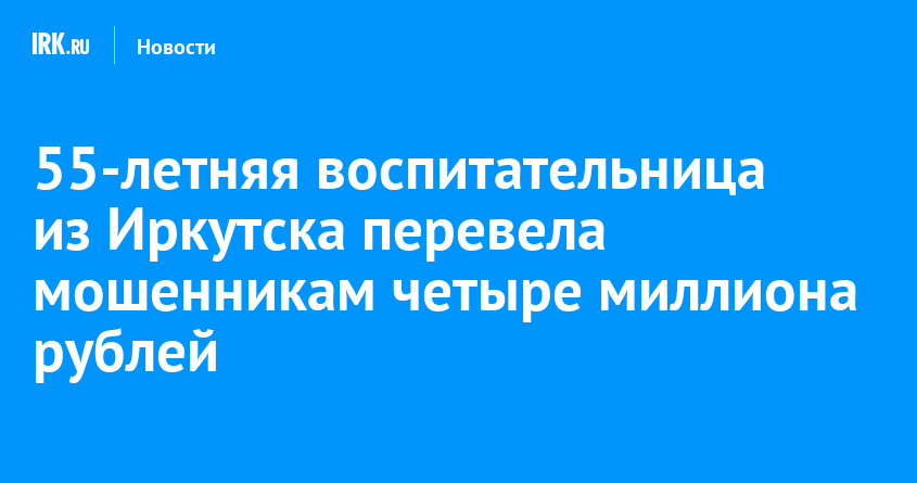 55-летняя воспитательница из Иркутска перевела мошенникам четыре миллиона рублей