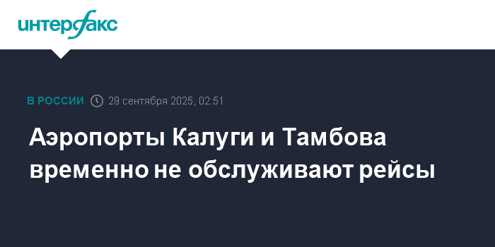 "Аэропорты Калуга (Грабцево), Тамбов (Донское). Введены временные ограничения на прием и выпуск воздушных судов", - говорится в сообщении.