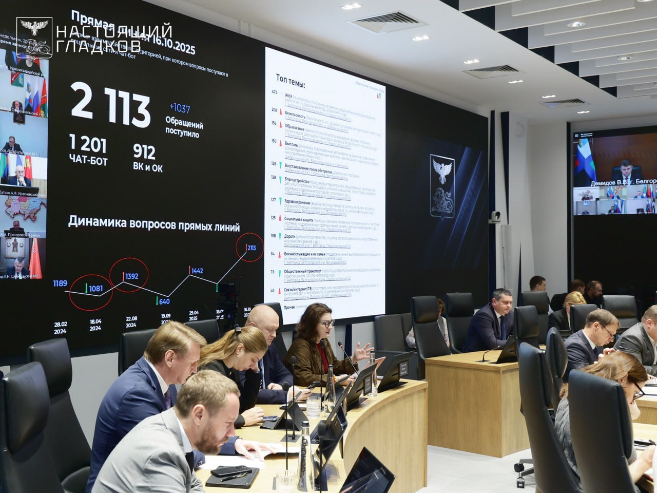 Белгородцы отправили 2 113 обращений на прямую линию, которую провёл Вячеслав Гладков 16 октября. По сравнению с аналогичным мероприятием, проходившим месяц назад, количество вопросов выросло вдвое. В этот раз отправить обращение можно было в том числе через чат-бот, что позволило увеличить охват.