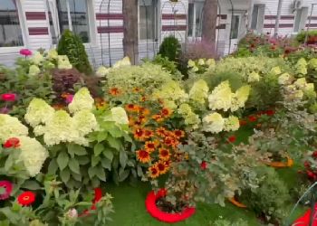 На территории компании можно увидеть не только цветы, но и помидоры, перцы, базилик, которые гармонично вписаны в ландшафтную композицию. А еще здесь высадили туи. Деревцам уже больше пяти лет помогают пережить морозы и палящее солнце. В итоге хвойные успешно прижились.