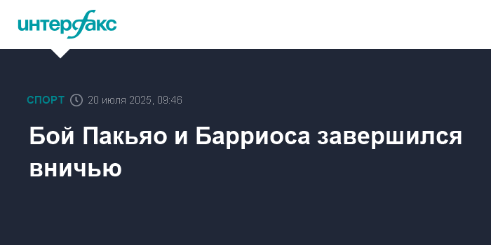 Москва. 20 июля. INTERFAX.RU - Филиппинский боксер Мэнни Пакьяо и американец Марио Барриос завершили вничью поединок за титул чемпиона мира по версии WBC.