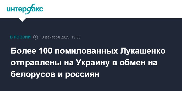 Москва. 13 декабря. INTERFAX.RU - Более 100 человек из числа помилованных президентом Белоруссии Александром Лукашенко были отправлены на Украину в обмен на россиян и белорусов, заявила в субботу пресс-секретарь белорусского лидера Наталья Эйсмонт.