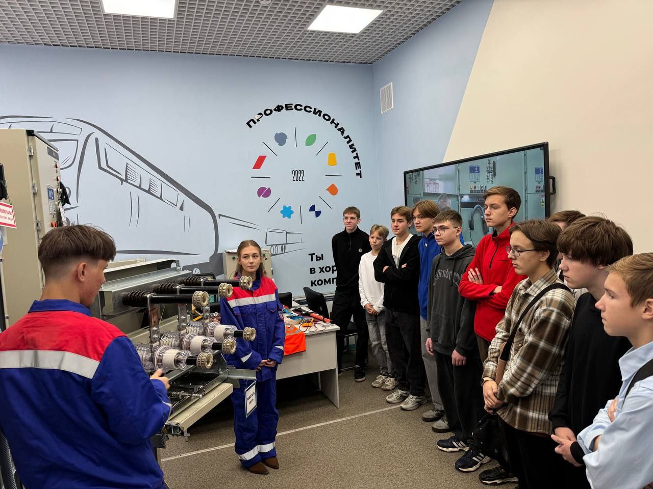 В железнодорожном кластере гости смогли познакомиться с преподавательским составом, принять участие в экскурсиях, мастер-классах и презентациях студенческих проектов. Большой интерес вызвала специальность «Техническая эксплуатация подвижного состава железных дорог». Школьники примерили на себя профессию машиниста, побывав на его непосредственном рабочем месте, познакомились с организацией управления поездом и приборами безопасности, а также отработали навыки отслеживания движения специального самоходного подвижного состава.