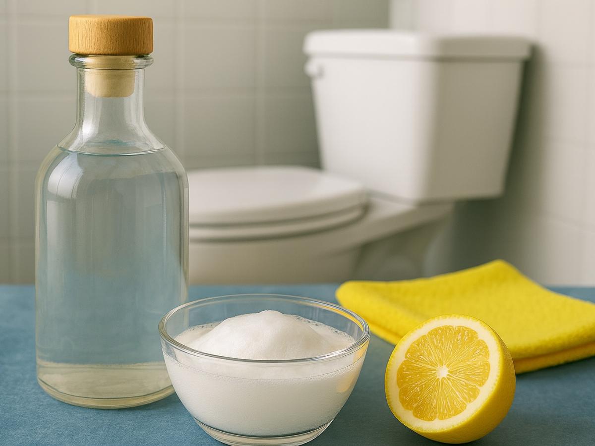 Фото: Generated by AI (DALL·E 3 by OpenAI) is licensed under Free for commercial use (OpenAI License) Смесь для уборки ванной Почему именно эти ингредиенты Белый уксус - природный антисептик, который справляется с налётом и уменьшает количество бактерий. Пищевая сода - нейтрализует неприятные запахи и служит мягким абразивом для деликатной чистки. Лимонный сок - источник кислоты, которая уничтожает часть микробов и придаёт свежий аромат.При соединении компонентов возникает вспенивание: реакция помогает разрыхлить грязь и облегчить её удаление с плитки, сантехники и керамических поверхностей.