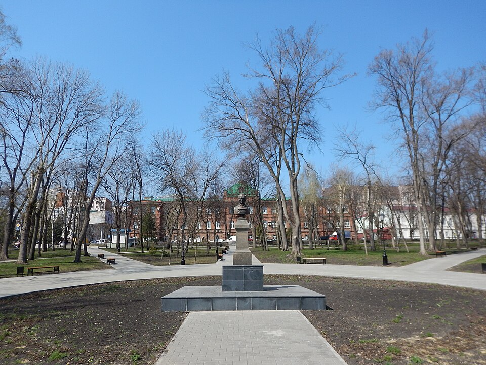 Расположение было выбрано не случайно, большую часть своей жизни Лермонтов провел в имении Елизавета Арсеньевой – своей бабушки, в пензенском крае, кроме того, поэт захоронен в пензенских Тарханах. Жители города решили увековечить память поэта к пятидесятилетию со дня его гибели. Скульптором бронзового бюста с четырехгранным двухметровым пьедесталом выступил Илья Гинцбург.*