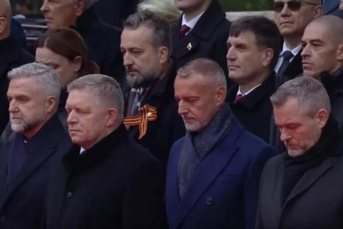 В церемонии приняли участие высокопоставленные лица, включая президента Петера Пеллегрини, спикера парламента Рихарда Раши, премьер-министра Роберта Фицо, а также ряд министров, парламентариев и иных официальных представителей. Депутат Блага находился во втором ряду, одетый в черное пальто, к которому с левой стороны была прикреплена георгиевская лента.