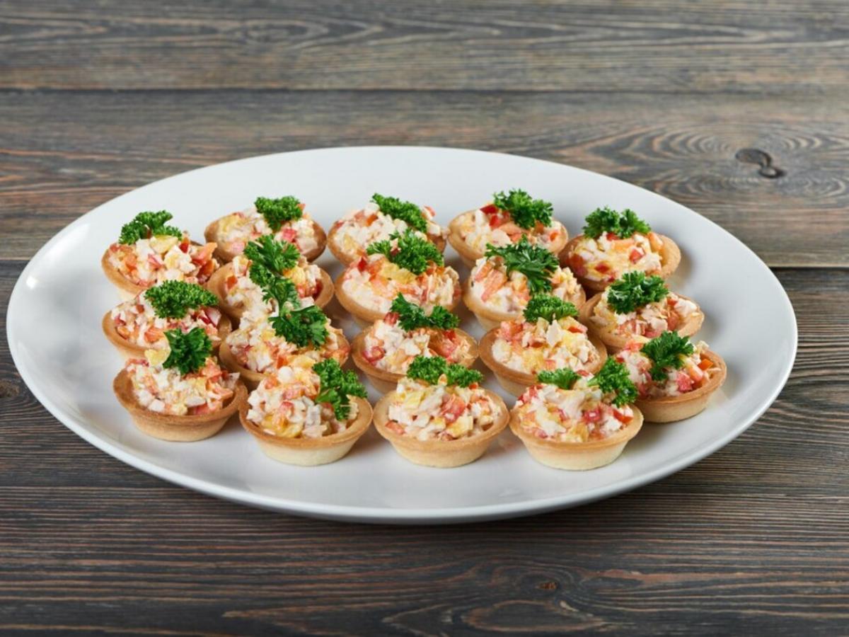 Что лучше — мини-тарталетки или стандартные?Выбор зависит от закуски. Для салатов и сытных начинок удобнее стандартный формат, для икры и деликатесов — мини-версия.