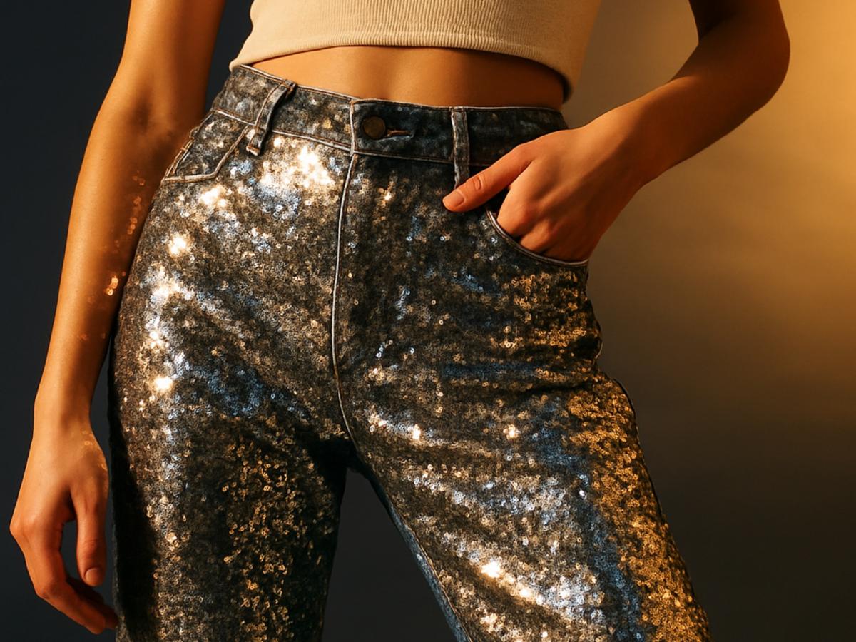 Фото: Generated by AI (DALL·E 3 by OpenAI) is licensed under Free for commercial use (OpenAI License) Джинсы с пайетками Джинсы с пайетками: особенности сезонного трендаПрименение пайеток в повседневных коллекциях привело к расширению вариантов использования денима зимой. Основная причина популярности таких моделей — визуальная выразительность, позволяющая сочетать их как с базовыми, так и с акцентными элементами. Важным фактором является возможность применения пайеток разных оттенков: серебристых, золотистых, радужных и других вариантов, что расширяет спектр стилизации.