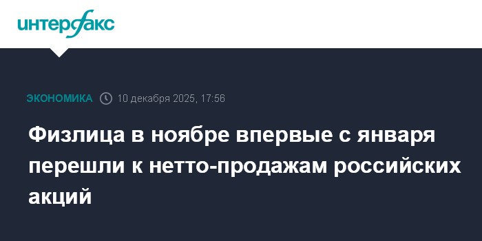 Москва. 10 декабря. INTERFAX.RU - Розничные инвесторы, с января активно покупавшие акции на российском рынке, в ноябре перешли к продажам, говорится в "Обзоре рисков финансовых рынков" Банка России.