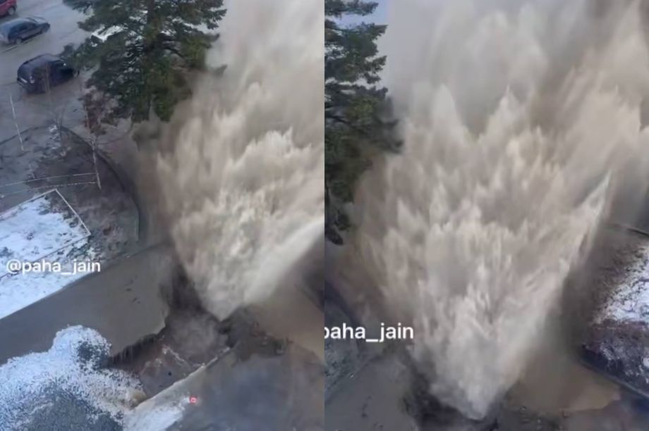 «Гейзер» высотой в три этажа: мощный прорыв трубы затопил улицы Снеговой пади