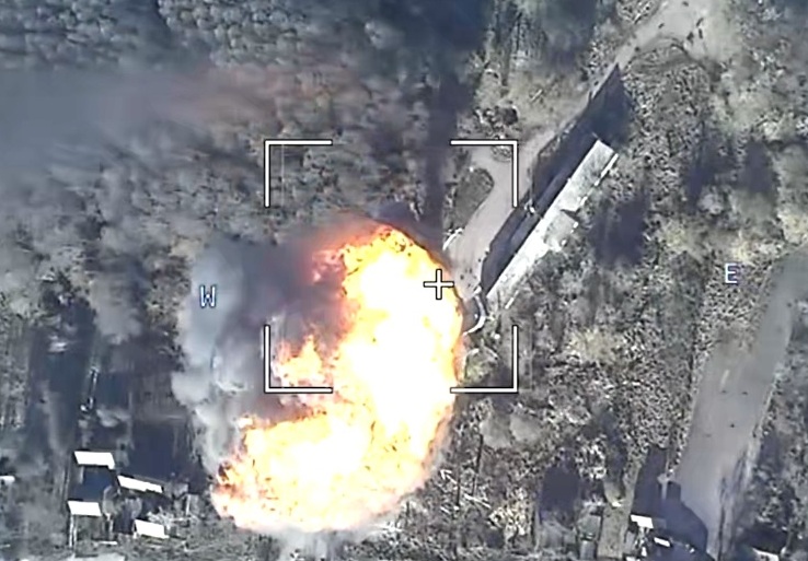 Наблюдение за ним велось с борта разведывательного БПЛА, который вывел на цель дрон-камикадзе самолетного типа, попавший точно в резервуар с топливом.