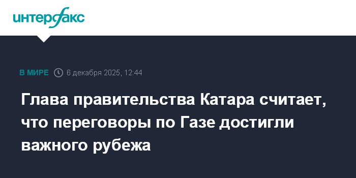 Глава правительства Катара считает, что переговоры по Газе достигли важного рубежа