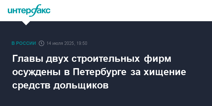 Главы двух строительных фирм осуждены в Петербурге за хищение средств дольщиков