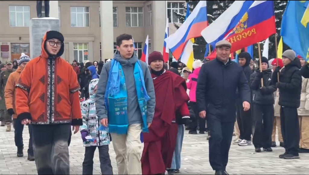 На центральной площади города участнику СВО преподнесли хадак по бурятским обычаям и каравай – по русским. Соктоев поблагодарил всех за радушный приём и возложил цветы к бюсту Героя Российской Федерации Жаргала Гомбоева.