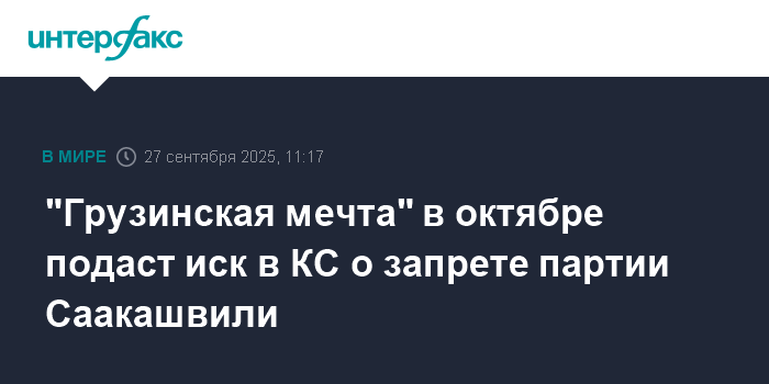 Москва. 27 сентября. INTERFAX.RU - Премьер-министр Грузии Ираклий Кобахидзе заявил, что правящая партия "Грузинская мечта" в октябре внесет иск в конституционный суд о запрете бывшей партии власти "Единое национальное движение" (ЕНД, учреждена бывшим президентом Грузии Михаилом Саакашвили - ИФ) и других политических сил, связанных с ней.