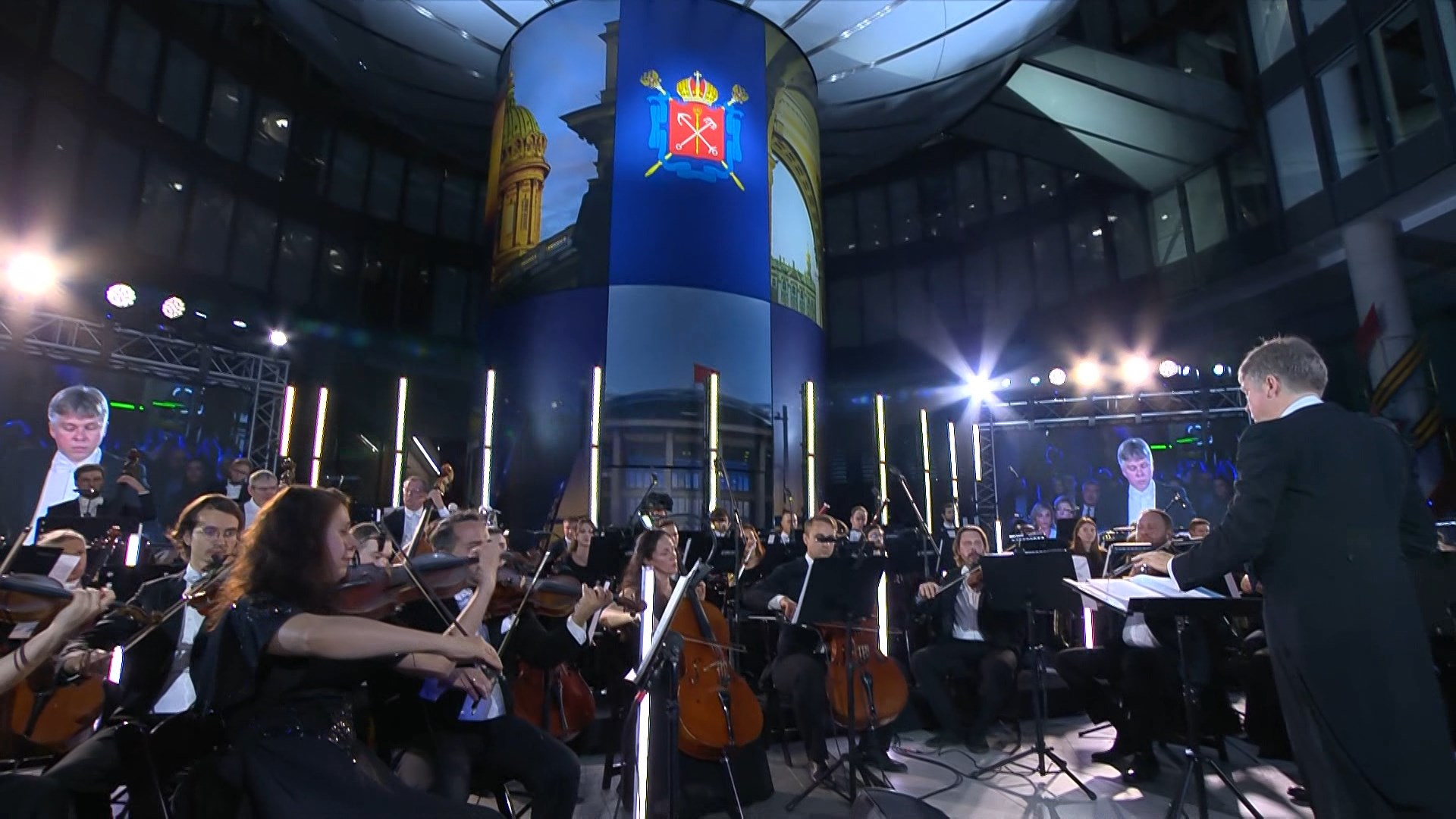 Концерт, посвященный юбилею со дня рождения Петра Чайковского, состоялся в холле общественно-делового центра. В программе — фрагменты из балетов «Щелкунчик», «Лебединое озеро» и «Спящая красавица», музыка из советских кинофильмов, композиции, посвящённые городу на Неве. Первым прозвучал «Гимн великому городу» Глиэра.