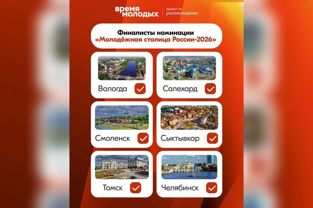 В финал всероссийского конкурса «Молодежная столица России», проводимого Росмолодежью, вышли Салехард, Вологда, Томск, Челябинск и Смоленск. Они борются за статус главной федеральной площадки для событий и инициатив молодежи на предстоящий год. Ярославская область поддерживает кандидатуру города-героя Смоленска.