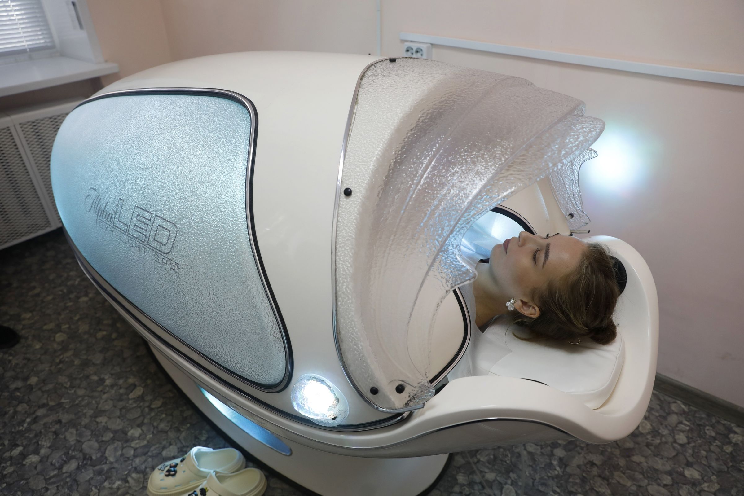Этот белоснежный аппарат внешне похож на индивидуальный мини‑звездолет. Внутри него создана особая атмосфера: сухое тепло, мягкий свет, вибрация и насыщенный кислородом воздух, ароматотерапия. Результатом его использования становится хорошее настроение, снижается внутренняя напряженность, стабилизируется вегетативный статус. Общее состояние улучшается, замедляется процесс старения.