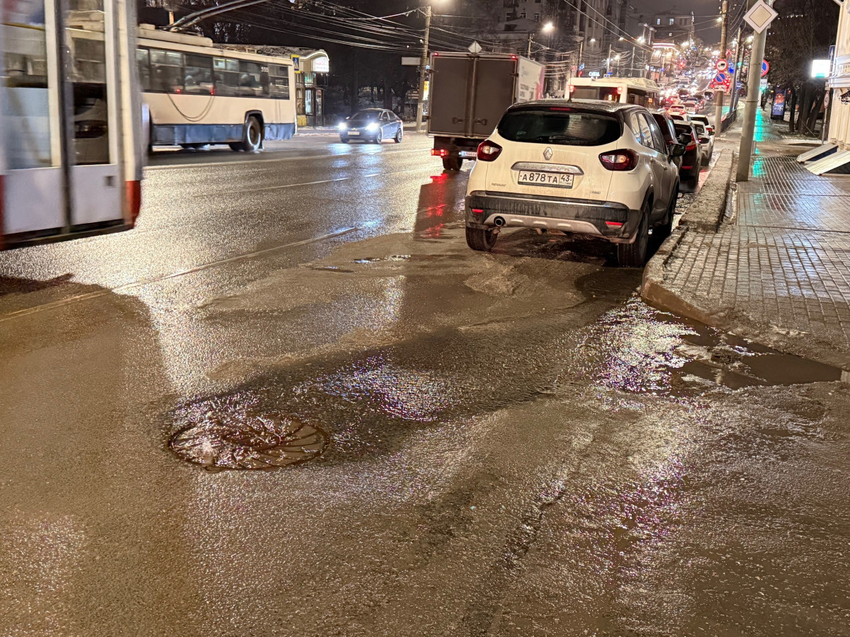 «Киров опять поплыл»: в центре города из-под асфальта хлещет вода