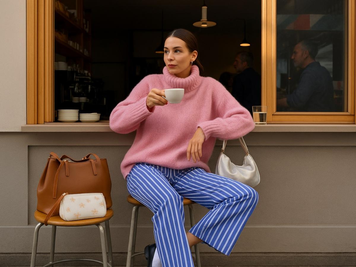 Фото: Generated by AI (DALL·E 3 by OpenAI) is licensed under Free for commercial use (OpenAI License) Девушка в пижамных брюках и розовом свитере Почему пижамные брюки остаются в трендеИзначально этот элемент пришёл из домашней одежды, но мода давно стерла границы между "домом" и "улицей". В 2025 году пижамные брюки окончательно закрепились в уличных образах, сочетаясь с трикотажем, пальто и массивной обувью. Осенью дизайнеры предлагают адаптировать их под новые погодные реалии — с плотными тканями, многослойностью и мягкой цветовой палитрой.