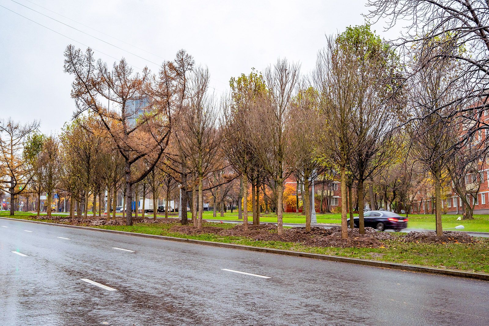 Деревья подбираются с учетом их способности адаптироваться к сложным условиям мегаполиса, а также по визуальному облику пространств. Для оживленных трасс очень важно создать буферную зону между жилой застройкой и дорогой. Зеленые насаждения очищают воздух, защищают от уличного шума и дорожной пыли, а также создают тень и прохладу в жаркие дни.