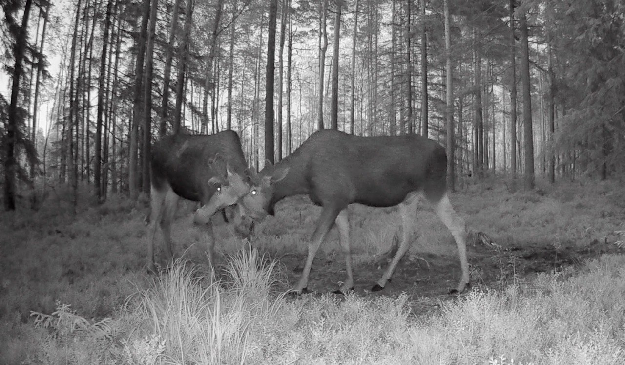 Лоси бережно относятся к своим пока неокрепшим рогам. Даже во время тренировочных поединков, которые уже начались, животные аккуратно имитируют будущие схватки, избегая прямого контакта. Удивительно, но лоси прекрасно чувствуют габариты своих рогов и в этот период вообще не соприкасаются ими.