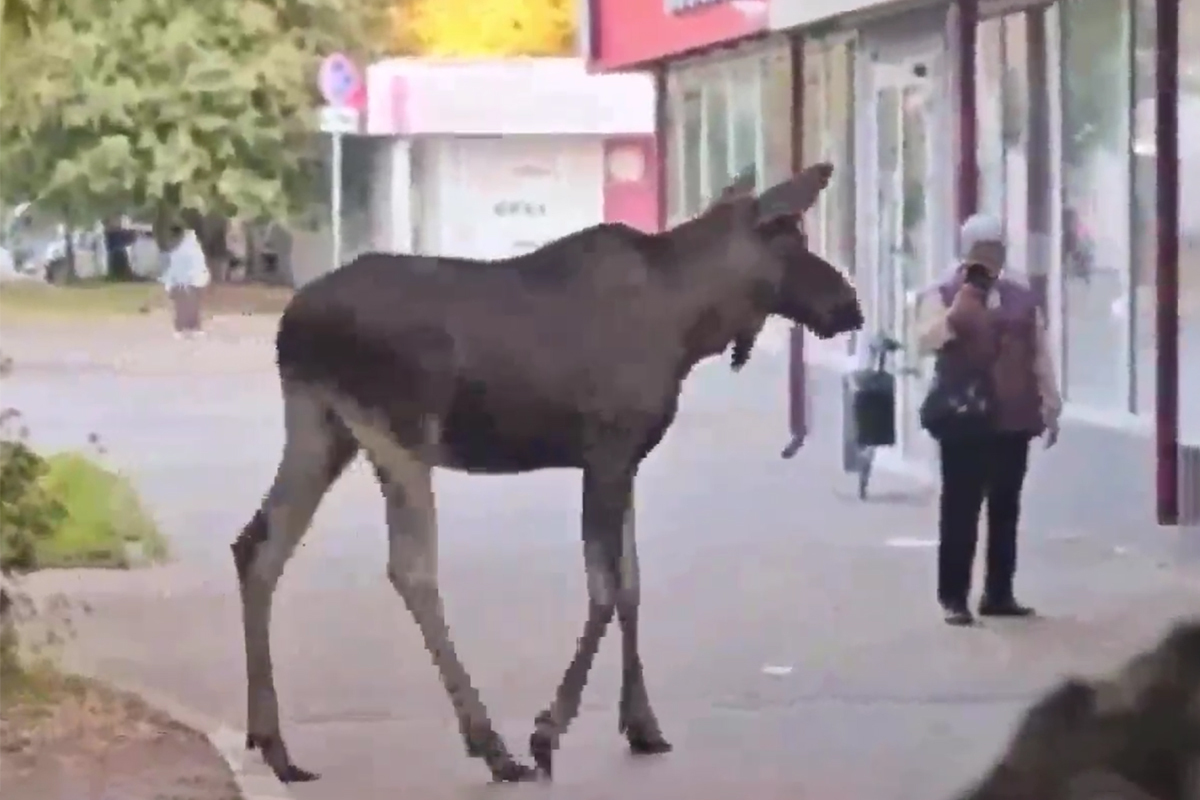 На кадрах видео лось вышел в черту города и гулял по улицам. В какой-то момент сохатый быстро побежал, напугав очевидцев, так что им пришлось разбегаться в стороны.