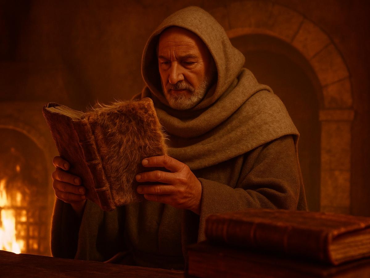 Фото: Generated by AI (DALL·E 3 by OpenAI) is licensed under Free for commercial use (OpenAI License) Монах и книга с меховым переплётомОтвет нашёлся лишь недавно — и оказался неожиданно северным.