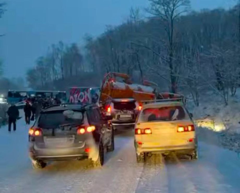 Трасса перекрыта, а на дороге выросла гигантская пробка, растянувшаяся практически от самой Находки.