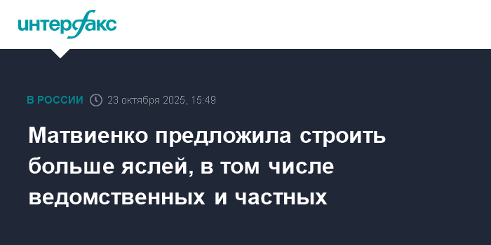 Москва. 23 октября. INTERFAX.RU - Спикер Совета Федерации Валентина Матвиенко предложила развивать в стране сеть яслей, в том числе частных.