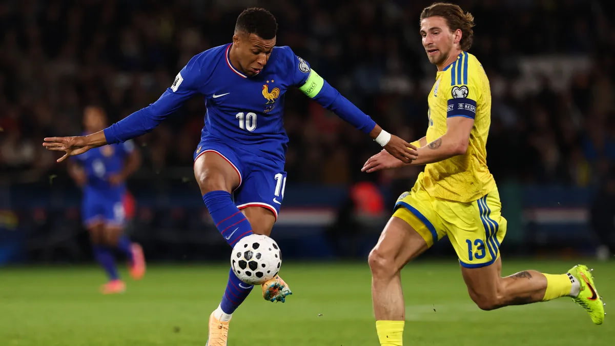 Sport.ru / Футбол. Капитан сборной Франции Килиан Мбаппе стал автором дубля в матче 5-го тура отборочного турнира на чемпионат мира – 2026 с Украиной. Это помогло французам разгромить украинцев со счётом 4:0 и гарантировать себе путёвку на мундиаль.