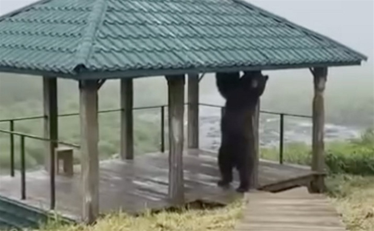 Медведь-культурист завелся в Южно-Камчатском заказнике. Косолапый облюбовал турник в одной из беседок, сообщает "41 Регион".