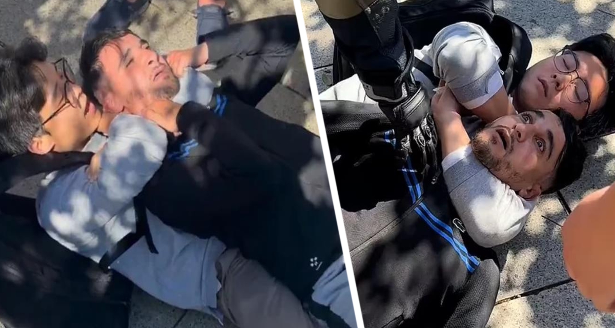 Мгновенная карма: турист молниеносно сделал удушающий захват карманника и у воришки от страха глаза полезли на лоб, он дико кричал