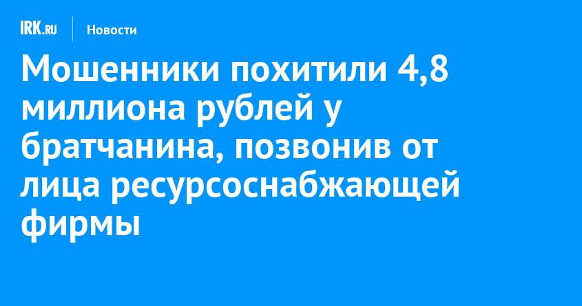 Мошенники похитили 4,8 миллиона рублей у братчанина, позвонив от лица ресурсоснабжающей фирмы