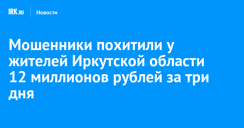 Мошенники похитили у жителей Иркутской области 12 миллионов рублей за три дня