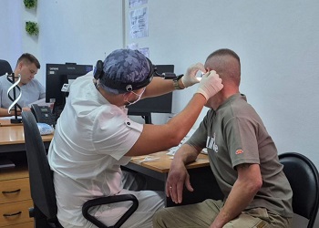 «Мы полностью осматриваем на наличие патологий носа и горла, визуализируем уши. Далее проводим аудиологическое обследование, гипонометрию, при необходимости импедансометрию пациентам и определяем дальнейшую тактику лечения. Мы обследовали 35 участников спецоперации. В 80% случаев проблемы у них возникли в результате получения боевых ранений. Чаще всего выявляем у бойцов тугоухость, хронические отиты, вызванные баротравмами, разрывы барабанных перепонок», — сказал врач-оториноларинголог Владимир Мареев.