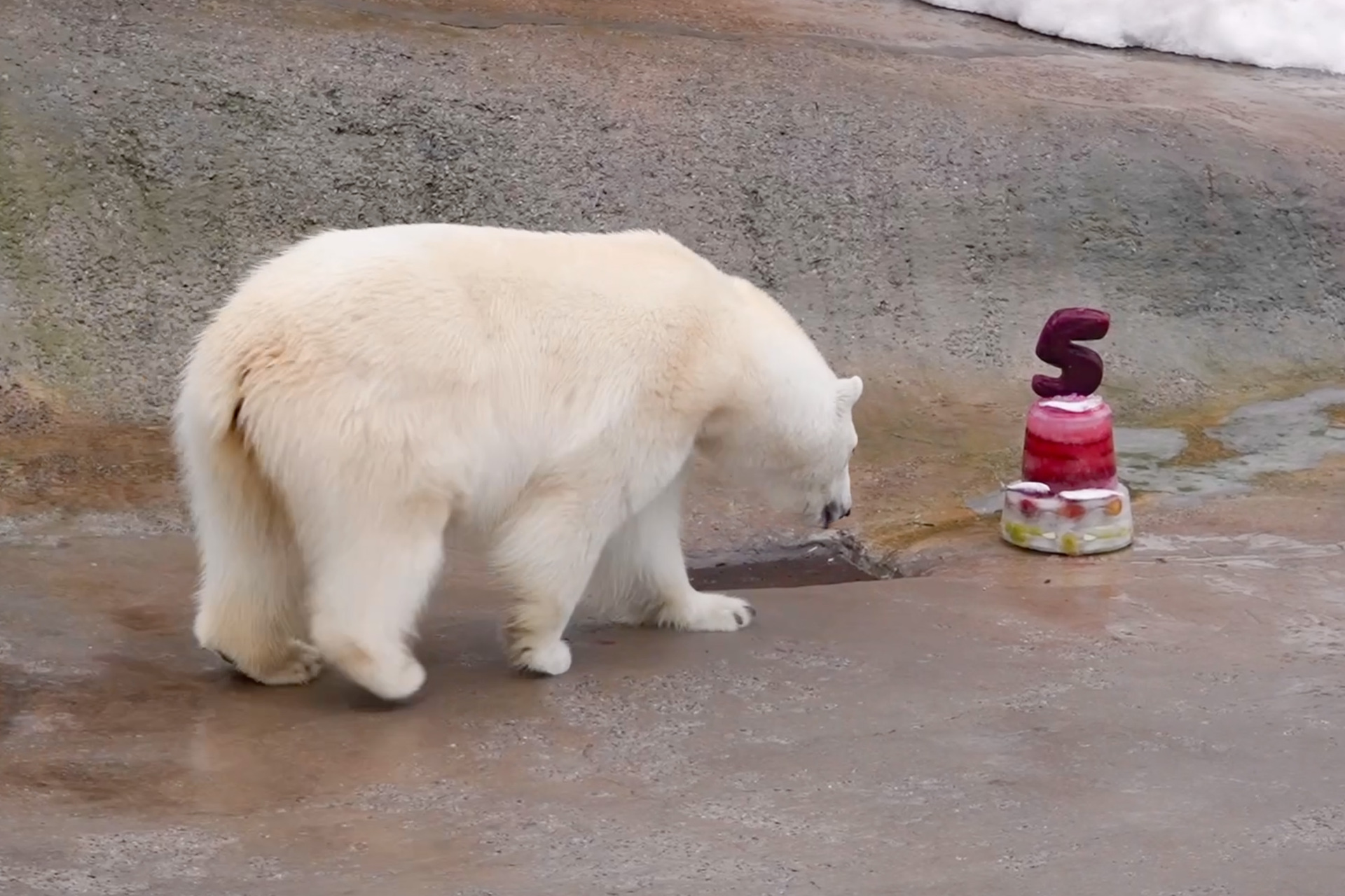 Московский зоопарк опубликовал видео с тортом для белой медведицы Айки