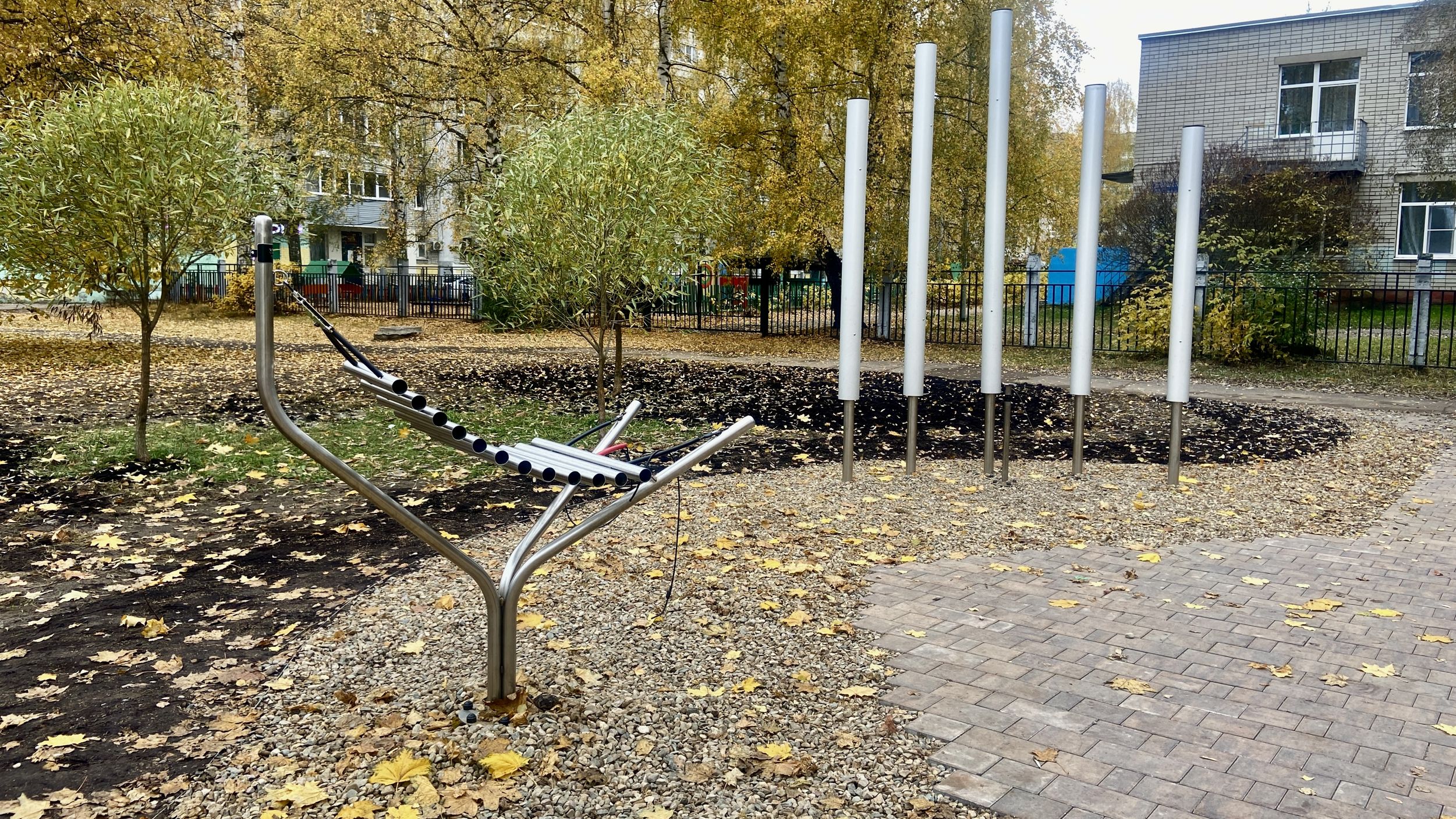 Музыкальные трубы и «поющая грибница», установленные на детской площадке, стали причиной спора в Заволжском районе Ярославля