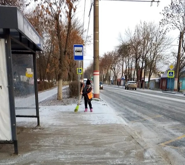 В утренние часы на улицы 168 работников, продолжив работу в ручном режиме на скользких участках тротуаров и лестниц.