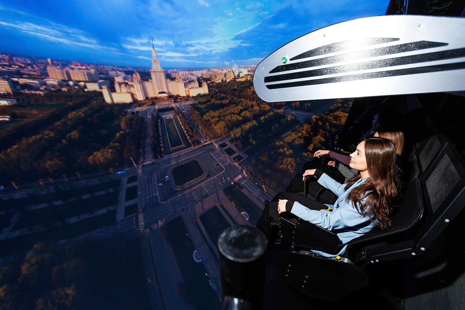Подвижная платформа в медиакомплексе «Полет»Юные зрители новой видеоистории познакомятся с аттракционом медиацентра парка «Зарядье» — динамическим летающим театром «Полет». Благодаря 13-метровому полусферическому экрану, подвижной платформе и спецэффектам (ветер, запахи, брызги) создается ощущение реального полета. В медиацентре на выбор транслируют два фильма: «Полет над Москвой 2.0» и «Полет над Россией».