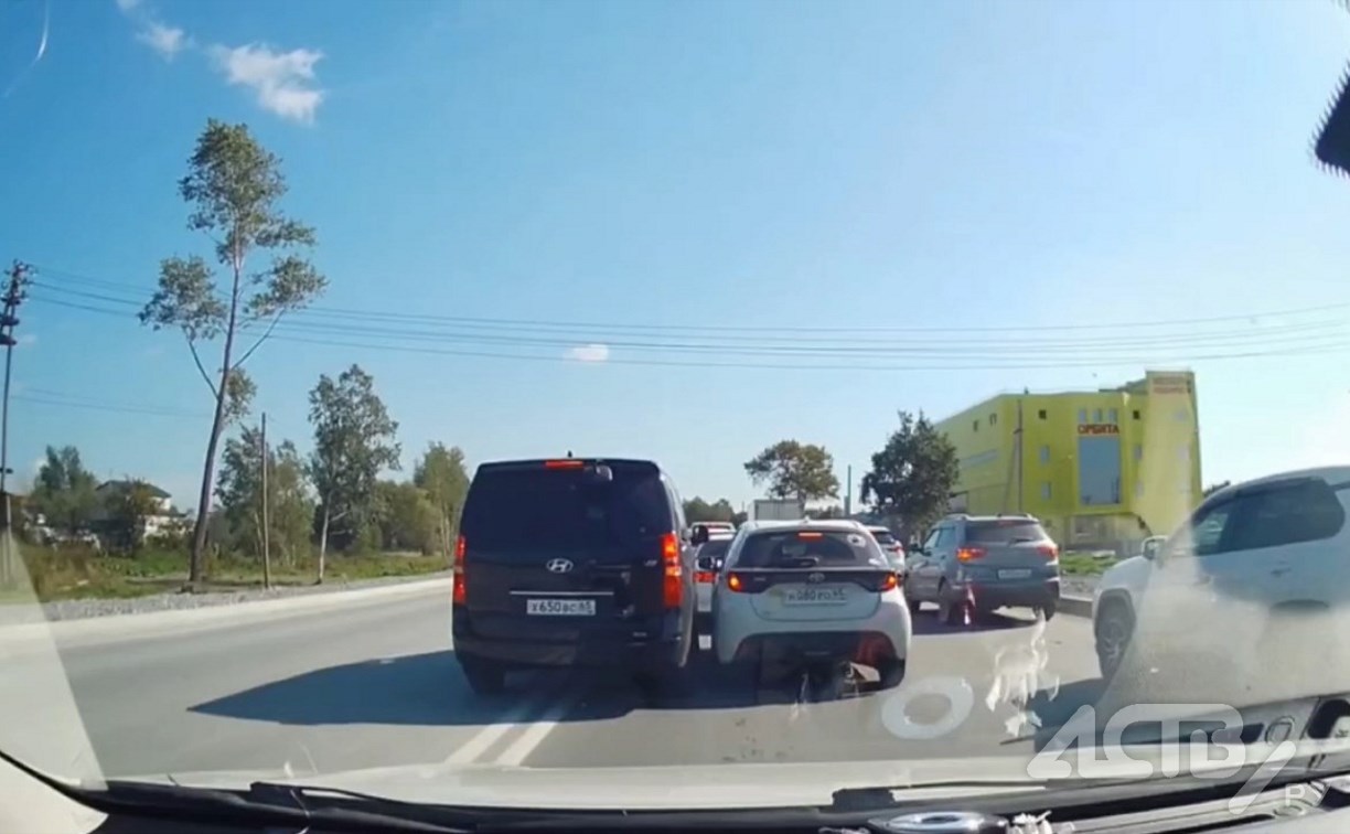 На проспекте Мира в Южно-Сахалинске чудом избежали повторной аварии